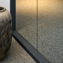 In this arrangement, door units consisting of the QbiQ DK100 aluminum door frame and the QbiQ KDD80-100 aluminum framed door were chosen. This door is equipped with two times 8mm laminated glass and a drop sill. As a result, the door has excellent sound insulation so that sound transmission is kept to a minimum. The door is 100mm thick and this a exactly the same thickness as the partition. This ensures that the glass panels of the door are aligned with the glass panels of the window.