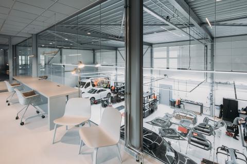 The industrial building of Wraptor consists of two parts: the workshop where the 'real work' is done and a part with the reception areas for visitors and supporting offices.